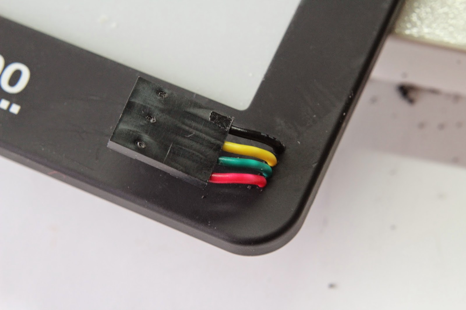Soldering the wires is a little tricky. I started with a dab of solder on each solder hole, tinned the trimmed wire with solder, then angled each one into the hole after reheating it with the iron. Note that the ground is much more difficult to solder as the heat is rapidly drawn away by the larger copper pour on the Kobo PCB.